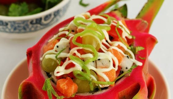 搭配煮熟的全麥義大利面,拌上黑胡椒或熏胡椒重阿爾弗雷多醬,配搭紅色、綠色、黃色炒甜椒、紅洋蔥條和番茄粒一同食用。