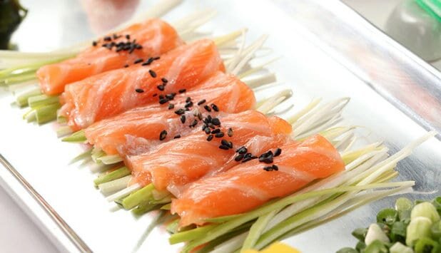 黑芝麻醬料配上薄切的挪威三文魚,香濃嫩滑