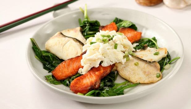 蛋白、菠菜配挪威三文魚及挪威比目魚